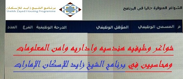 اعلان وظائف شاغرة ببرنامج الشيخ زايد للاسكان بالامارات لعدد من